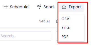 - You can schedule your reports to be sent to your email with your desired frequency. Simply choose the export file type, then fill in the information for the email and select the frequency.