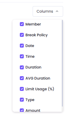 You will see the list of breaks taken by each member, along with the Break Policy, duration, whether it is paid or unpaid, and the amount if it is paid.