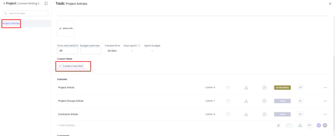 You can also add custom fields for your existing projects, if you feel like it will be necessary to include all the information about the project description in that way. To do that click on Custom Fields, then select the Create a new field button after creating the project and opening its side panel.