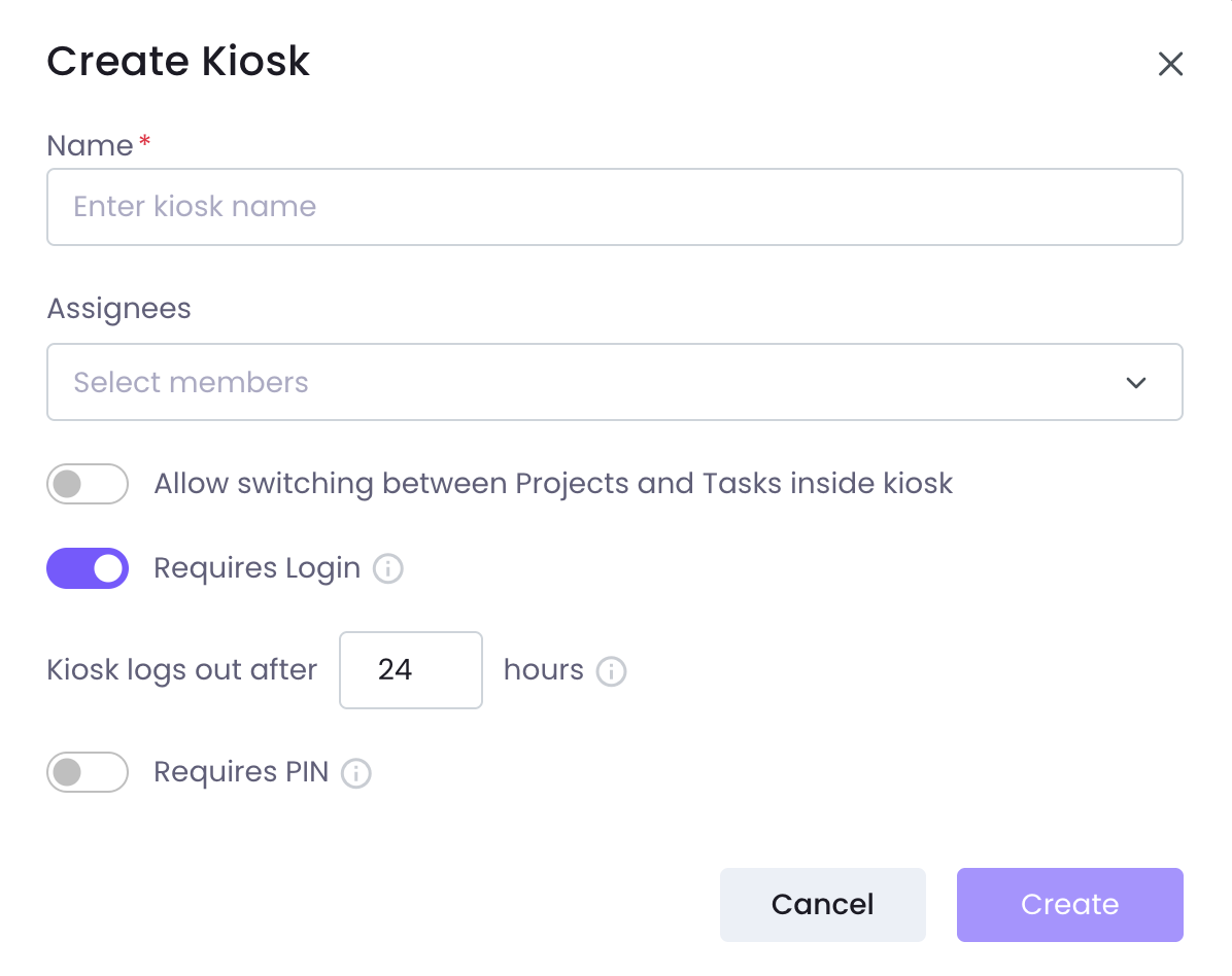- You can also require login, which means that the workspace owner and executive managers need to log in to activate the kiosk.