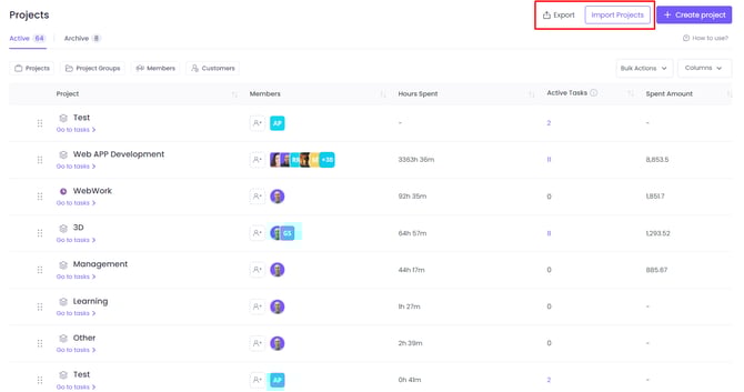 The Import/Export Projects feature allows you to quickly transfer large amounts of project data, making it easier to set up or manage multiple projects at once.
