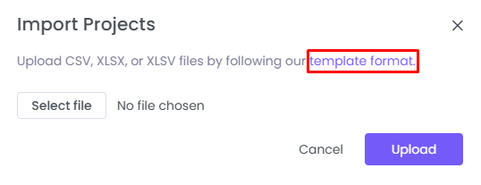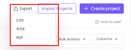 Exporting projects is just as simple. At any time, you can download all your existing projects in one file. This makes it easy to create backups, share data with your team, or move projects to a different workspace.