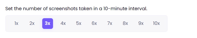 The first option you can adjust is how many screenshots are taken every 10 minutes. The available frequency depends on your plan: