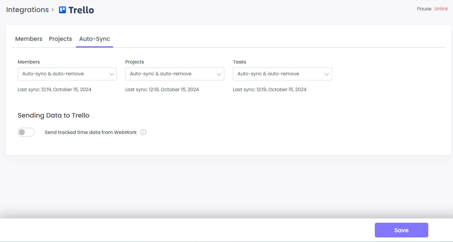 - Auto-sync: Projects and tasks will be added to WebWork when created on Trello